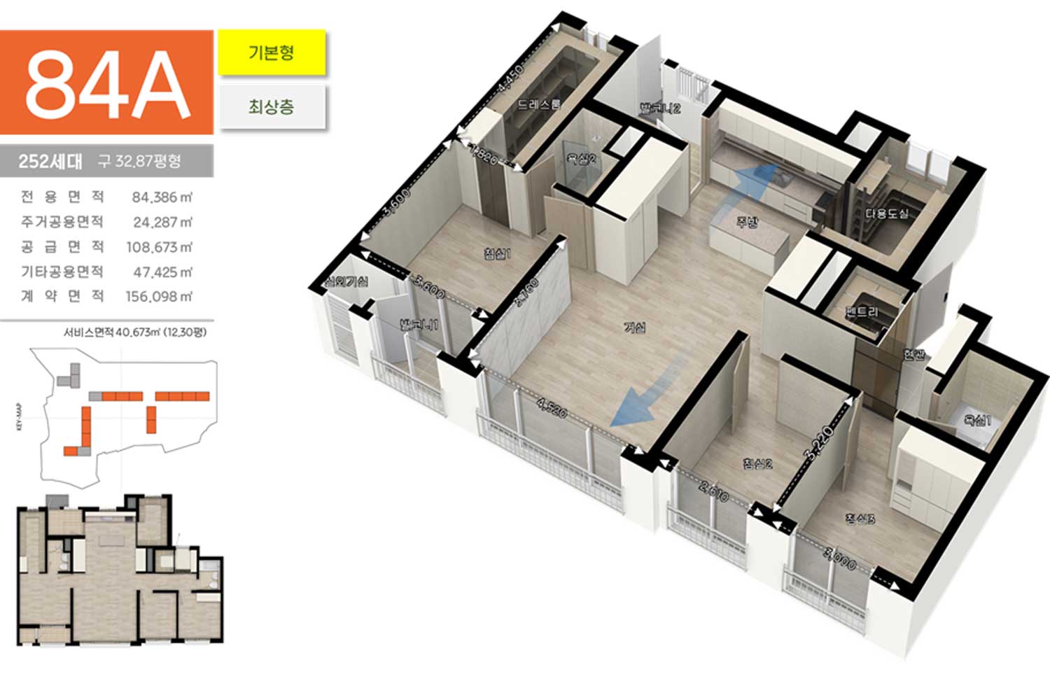 발코니확장, 붙박이장, 드레스룸, 주방특화평면